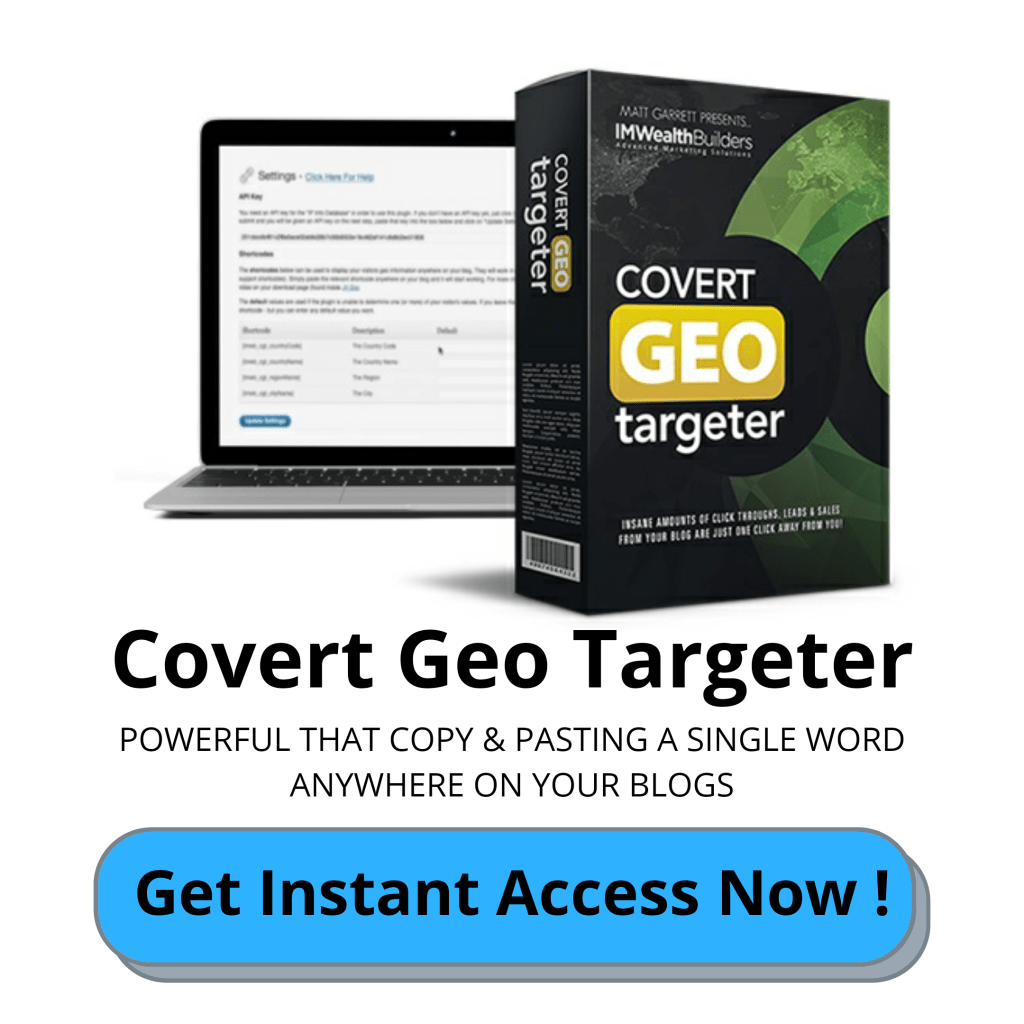 First of all the Covert Geo Targeter is a super simple to use and install (1 click install) WordPress plugin. That means the software will work on any computer, all you need in order to use it, is a self hosted WordPress blog.